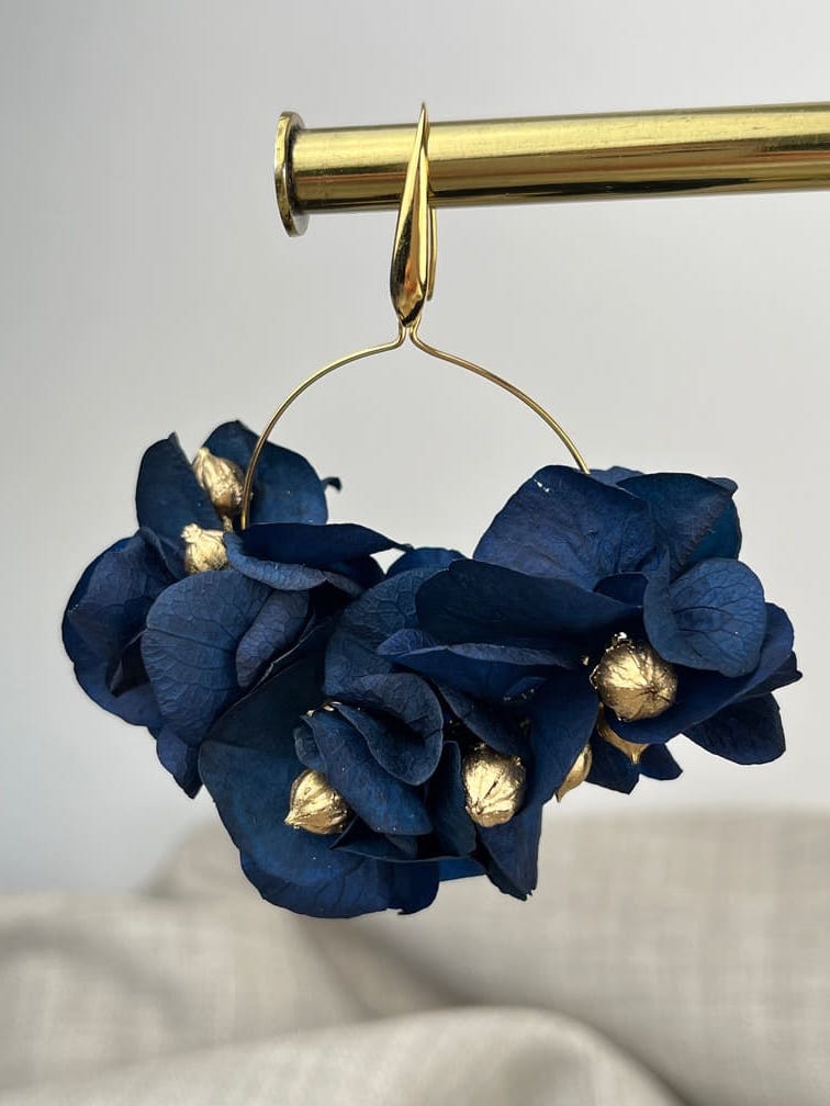 Créoles fleurs stabilisées bleu marine et or Soline – L’Accessoire floral léger, chic et durable